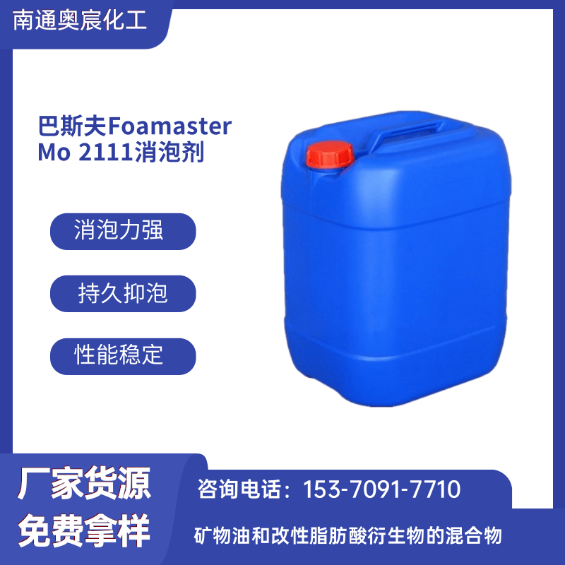 在储存期间,巴斯夫消泡剂Foamaster Mo2111可能会形成轻微的沉 淀或相分离。如果产品在使用前充分混合,则不会影响Foampaster Mo 2111的消泡性能